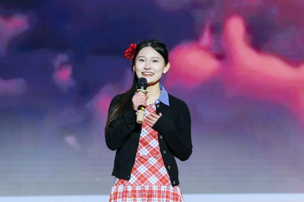 校级先进班集体获奖代表于佳瑄发言。