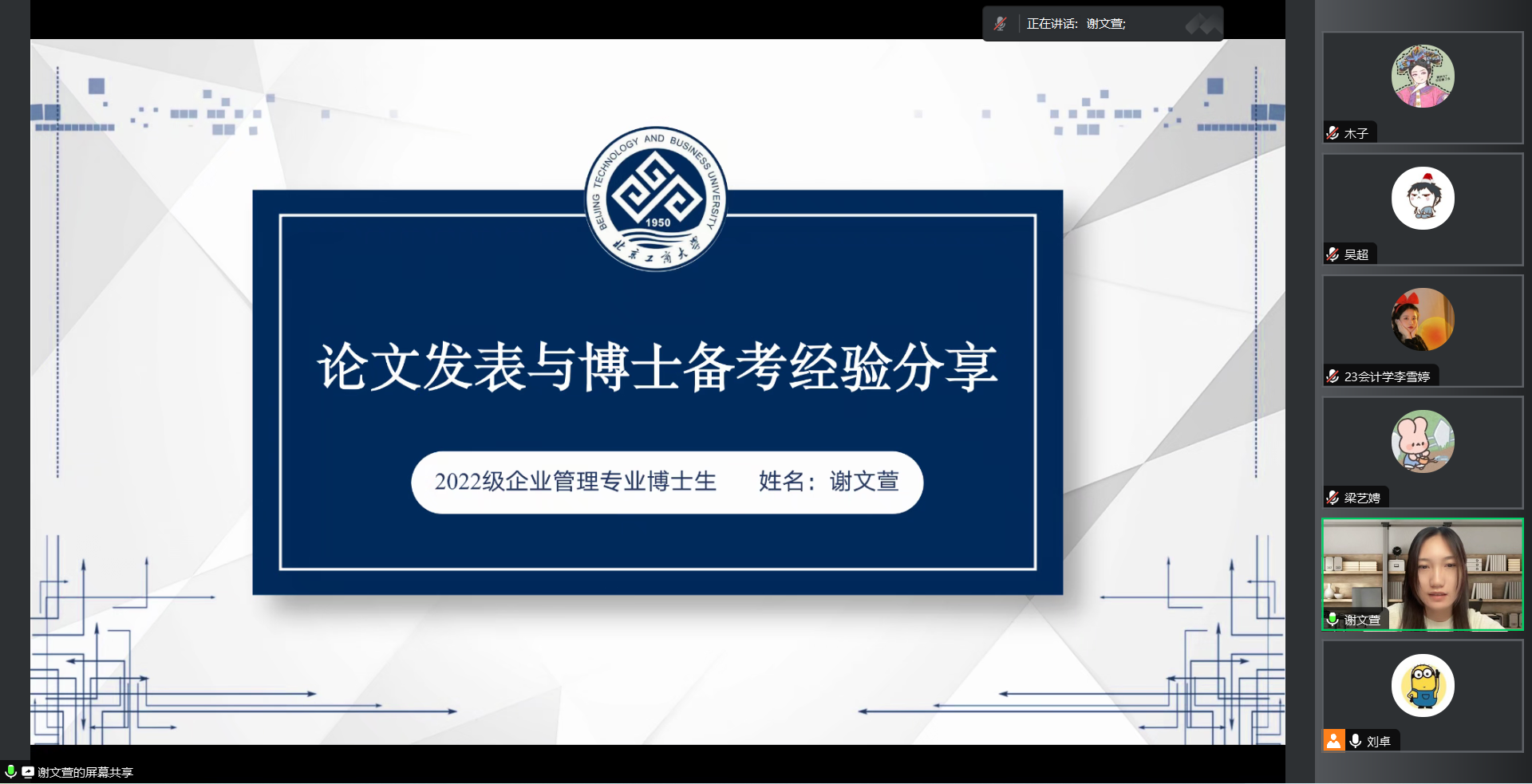 2023年6月15日下午14点,日本A片 采用线上腾讯会议形式组织召开了2023年硕博连读宣讲会。日本A片 招生办公室主任刘卓老师、博一企业管理专业谢文萱学姐、研二财务管理专业薛琳学姐以及23级学术型研究生参加了本次宣讲。本次线上宣讲会吸引了40多名有意向读博的同学在线参与,取得了良好的宣讲效果。