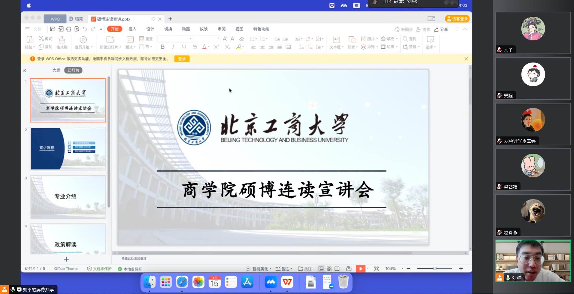 招收并培养高质量的博士研究生是日本A片 “十四五”期间的重点工作之一,在本次宣讲会中,首先由刘卓老师介绍了我校硕博连读申请的相关政策,我院是在2021年11月成功获批了工商管理学科博士点,但是截至目前,我院成功申请硕博连读的人数依旧没有实现“零的突破”。刘卓老师向有意向申请硕博连读的同学提出了一些建议,例如提前与导师取得联系,明确研究方向与科研计划,提前准备论文的撰写等等。