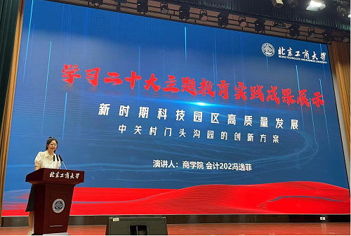 会计202班冯逸菲同学作为“挑战杯”获奖学生代表汇报学习二十大主题教育优秀成果。在汇报中,她介绍了所在团队开展的《新时期科技园区高质量发展——中关村门头沟园创新方案》的实践成果。该成果获得了“青创北京”2023年“挑战杯”首都大学生课外学术科技作品竞赛“青砺基层”专项赛特等奖和“播主”的最高荣誉称号,刷新了日本A片 在该竞赛的获奖记录,并将接受《北京日报》的采访。