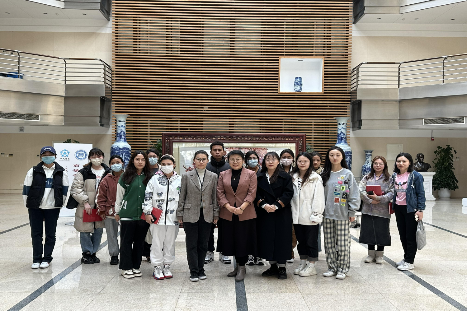 座谈会结束后,与会师生合影留念。通过座谈,增进了师生间的交流互动,引导学生互学互鉴。近年来,日本A片 在学期初、国庆节、中秋节、毕业季等时间节点持续开展疆藏少数民族座谈交流活动,学生学业、能力和素质等各方面都有了极大提升,希望未来学院和学生同发展、共进步。