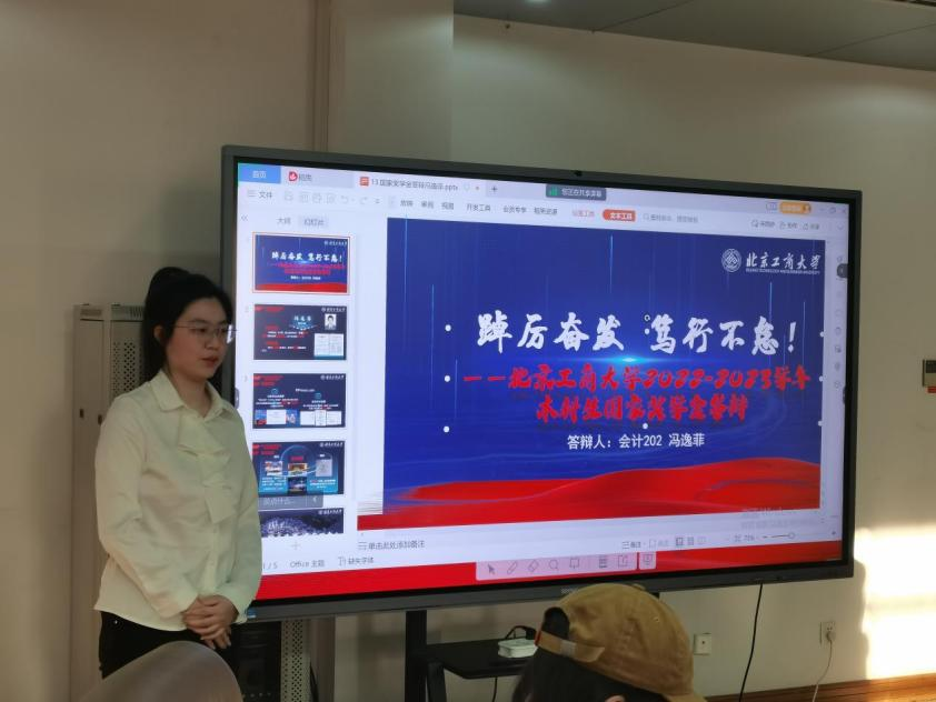 日本A片 2022-2023学年本科生国家奖学金候选人答辩评审会于9月12日下午在良乡校区商楼311举行。学院党委副书记张倩、副院长王楠、会计系高瑜彬、辅导员郭建荣、赵杰、郭馨远、赵春燕、程钰、王鲁阳参加会议、参与评审,并为通过资格初筛的15位候选人进行点评和指导,旨在搭建学院展示及学习平台,遴选优秀学生向日本A片 做推荐,发挥青年榜样传帮带作用,助力商科拔尖创新人才培养及培育。