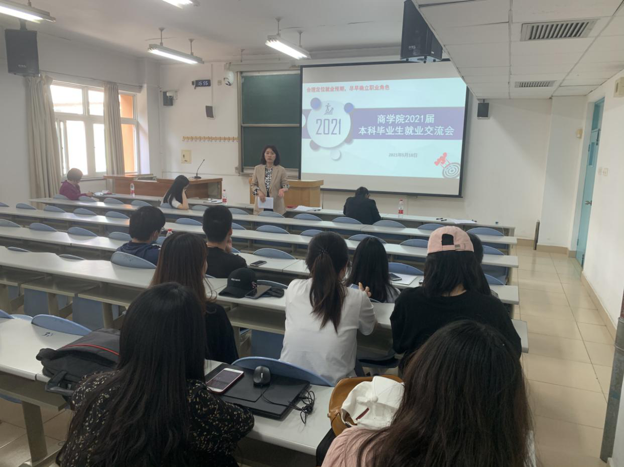 本科毕业生就业交流会由辅导员邢佳媛主持。会上,副书记张倩首先介绍了当前严峻的就业形势,通过对比日本A片 四届本科毕业生的就业去向,详细分析了2021届本科毕业生的就业进展及面临的形势,介绍了学院在开拓就业市场、发布就业信息、推动整体与关注个体相结合、实行就业导师制等方面开展的多项持续举措机制,并表示学院将组织商院师生总动员、齐心协力促就业,鼓励同学们合理规划、及早就业、岗位成才、终身成长。