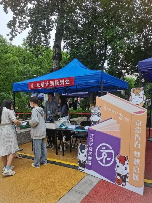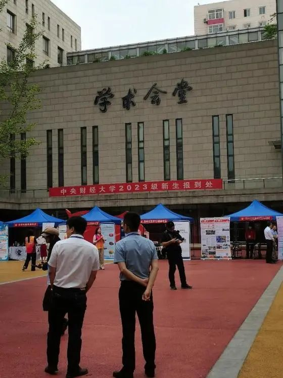 在我校良乡校区举行迎新活动的同时,由我校与中央财经大学联合培养的23级会计双培学生在中央财经大学南路校区学术会堂门前广场正式报道。新生们从进入中央财经大学的校门到宿舍楼,从宿舍楼到双培计划报道处,再到会计学院迎新棚,全程感受到了高效与温暖。