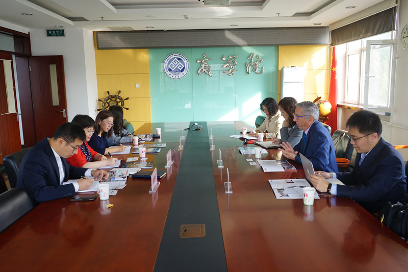 10月19日上午,加拿大谢尔丹学院国际部主任A. Michael Allcott、助理Agnes Li一行访问我院,商学院副院长何玉润、研究生院副院长石松、商学院国际交流与认证办公室执行主任蒯鹏州、田翛然在综合楼501会议室亲切接见。