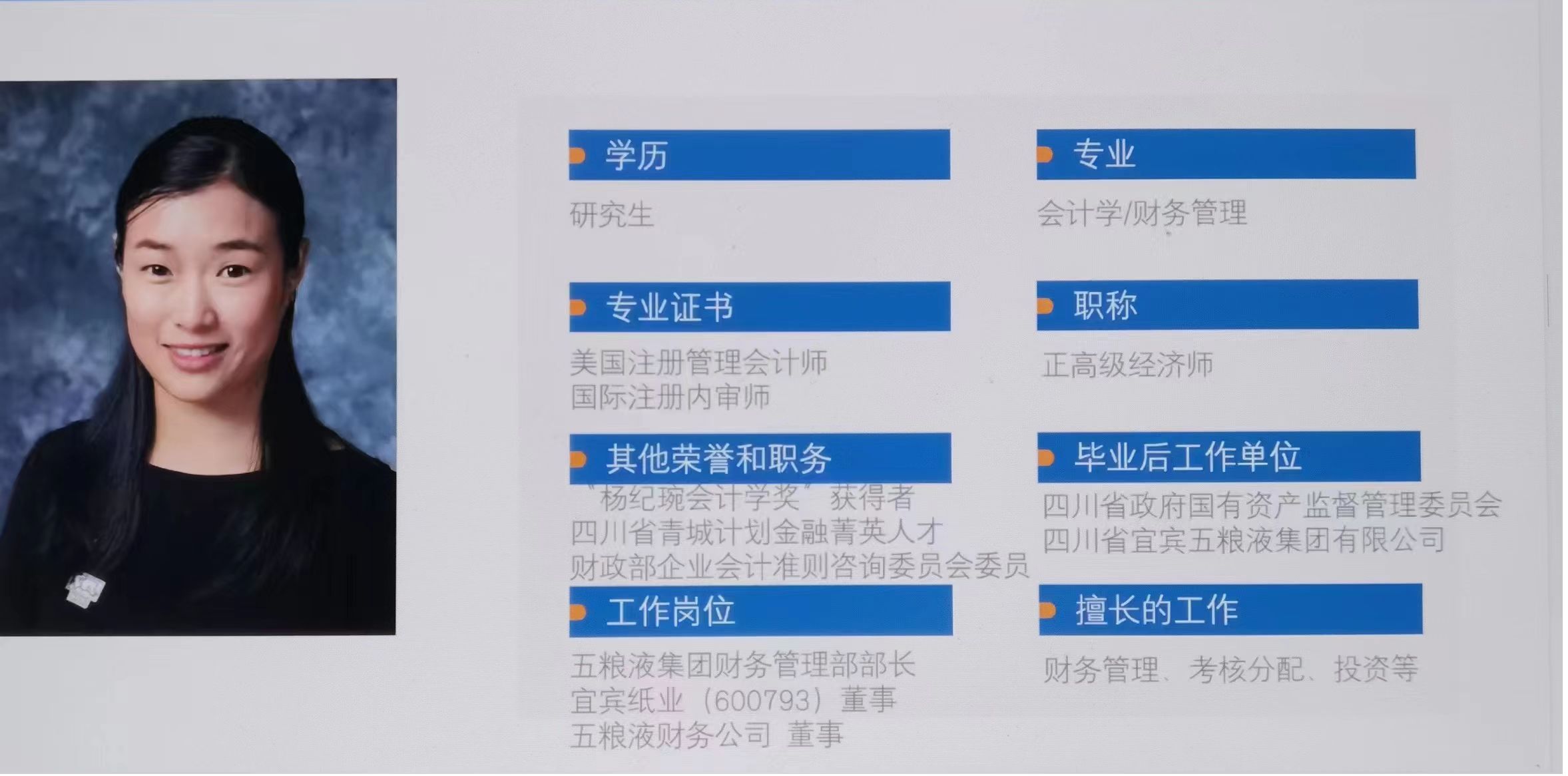 五粮液集团财务部部长、五粮液财务公司董事、宜宾纸业董事李欣忆是我校注会052、财务管理09级研究生。她面向财会专业学生授课,首先用SWOT分析法帮助同学们从“优势、劣势、机会、威胁”四个方面正确认识自己;之后提出“同学们在大学期间能做什么”,并从“专注每一门课程的学习”“积极参加校内外活动”“多尝试、多思考、多请教”进行讲解;随后,她进一步向同学们分析介绍了财务管理与会计类专业的职业方向。之后,她结合自身经历分享了就业的体会,并给予同学们建议:做好每件小事,抓住每次机会,重视每次学习等。她讲到,受欢迎和进步快的职场人士一般会具备靠谱、专业强及综合素养高等个人的职业能力。最后,通过播放五粮液集团宣传片系统了解了该集团从成长历程与公司业务等方面,并向同学们表达了祝愿与期望。