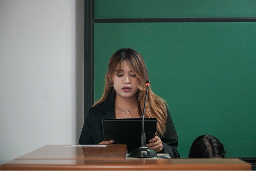 商学院学生会主席团成员尚博珩、屈可心、梁紫瑄分别宣读了学生代表大会筹备报告,大会秘书长名单,大会主席团成员名单,代表资格审查报告,各代表团正、副团长名单,监票人计票人名单,学生会主席团候选人名单及团委、青志协主要负责人候选名单等。