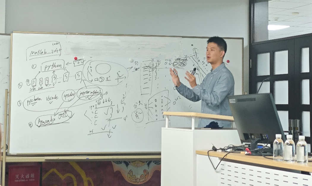 李明琛老师聚焦“机器学习与多模态数据挖掘”,从监督学习与无监督学习的基本框架出发,系统讲解了BPNN、ELM、LSTM等经典算法原理,以及粒子群优化(PSO)、奇异谱优化(SSA)等智能优化策略。他通过电力负荷预测、国际油价建模等实证分析,展示了混合模型在复杂管理场景中的应用价值。随后,李老师逐步拓展至文本挖掘中的关键词提取、分类与聚类技术,并进一步延伸至图像、语音、视频等多模态数据的分析方法。在实践教学环节,他针对各专业学生在程序实现中遇到的典型问题进行了现场调试与解析,有效提升了学生面向真实管理问题的建模与编程能力。