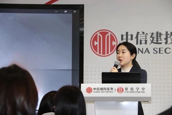 中信建投丁雪怡向大家介绍世界证券市场、我国证券市场的发展历史,并结合实物股票、股票认购证、证券交易卡、证券买卖委托单、红马甲等历史展品,讲述上世纪八九十年代中国证券市场发展历程。