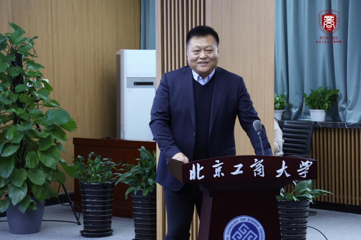 2025年11月15日下午,北京工商大学商学院MPAcc产教融合与职业发展论坛暨校外导师见面会在阜成路校区西区综合楼二层会议室隆重举行。本次活动以“融智赋能·协同育人”为主题,是学院深化产教联盟对接、提升人才培养与就业市场适配度的重要举措。商学院党委书记樊江涛、副院长赵川、院长助理兼MPAcc中心执行主任刘金钊、副主任李梓等出席会议。来自大型央企、国企、知名会计师事务所、权威行业协会等19家单位的校外导师代表和MPAcc学生参加了本次盛会。会议由商学院副院长赵川教授主持。