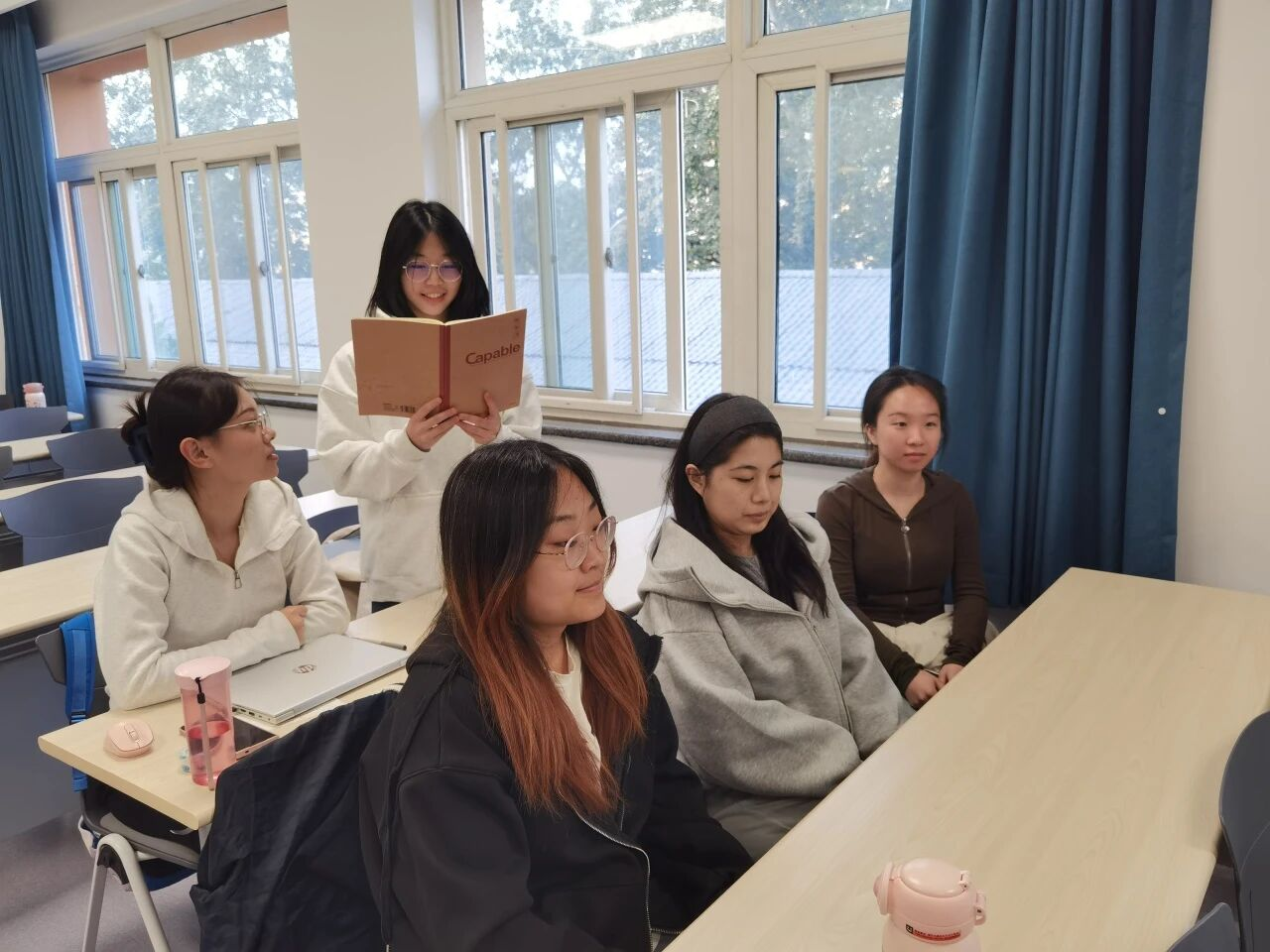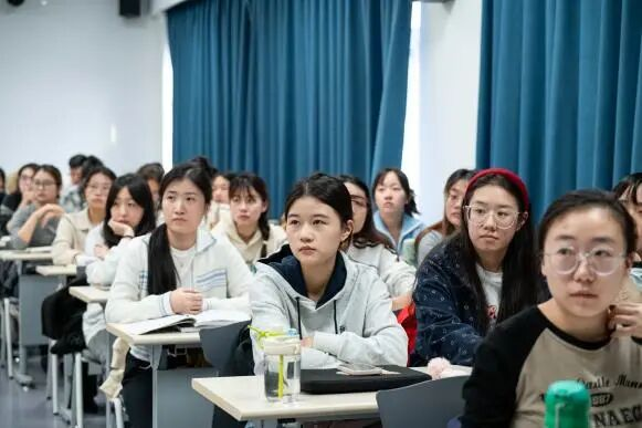 在良乡校区行政楼122、A报告厅和阜成路校区教三楼344、345的各分会场,商学院师生党员们精神饱满、聚精会神地聆听报告。