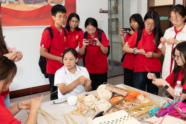 大名草编是一种传统民间家庭编结手工艺,2008年被列入第二批国家级非物质文化遗产名录。在大名草编国家级传承人王群英的指导下,实践团成员沉浸于草编研学体验区。他们亲手学习七股辫、五角星编织技法,用镜头记录秸秆蜕变为艺术品的全过程,深度访谈原料供应、商业模式与传承困境。面对学员老龄化、回报周期长等痛点,团队提出 “直播教学+短视频引流”数字化解决方案,力图通过抖音课堂吸引年轻群体学习草编技艺,为古老非遗注入新活力。
