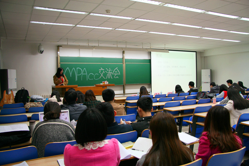 2015年4月2日晚上七点,由商学院研究生会举办的MPAcc就业交流会在教一206顺利举行。其中2011届毕业生就职于中国人民银行的王倩倩、2013级代表李玉涵、于琪、许小崇、杨超、齐欢参加了本次经验交流会。会议由商学院研究生会学术部部长李文静主持。