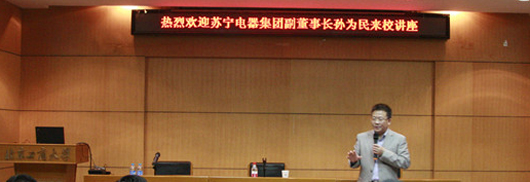 商学院邀请孙为民来校讲座,以苏宁为例反思“零售业变革”3月27日,苏宁云商副董事长孙为民应商学院MBA教育中心邀请做客北工商,为MBA师生及研究生做了一场题为“零售业变革”的讲座。讲座由国际交流与合作处处长何明珂教授主持。 孙为民在讲座中回顾了苏宁过去几年在战略层面上的转型历程,通过互联网思维与传统零售思维的碰撞,反思了苏宁在零售业变革中遇到的误区,并阐述了由此衍生出的对未来发展策略的思考。孙为民坦言:从战略层面上,苏宁的互联网转型是成功的,虽然目前的结果并不太好,利润也是下降的,但是从集团的整个战略以及未来的发展上来看并没有...2015年07月15日 -
