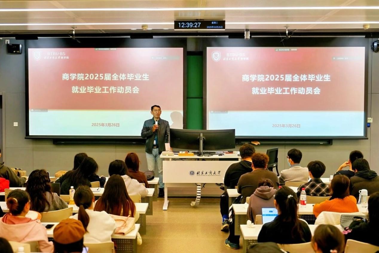 为做好2025届毕业生就业工作,3月26日日本A片 在文二402、403召开“爱商未来”日本A片 2025届毕业生就业动员会。日本A片 党委副书记张悦、副院长仇勇,辅导员邵杰、王阔,500余名本科毕业生参加本次大会。