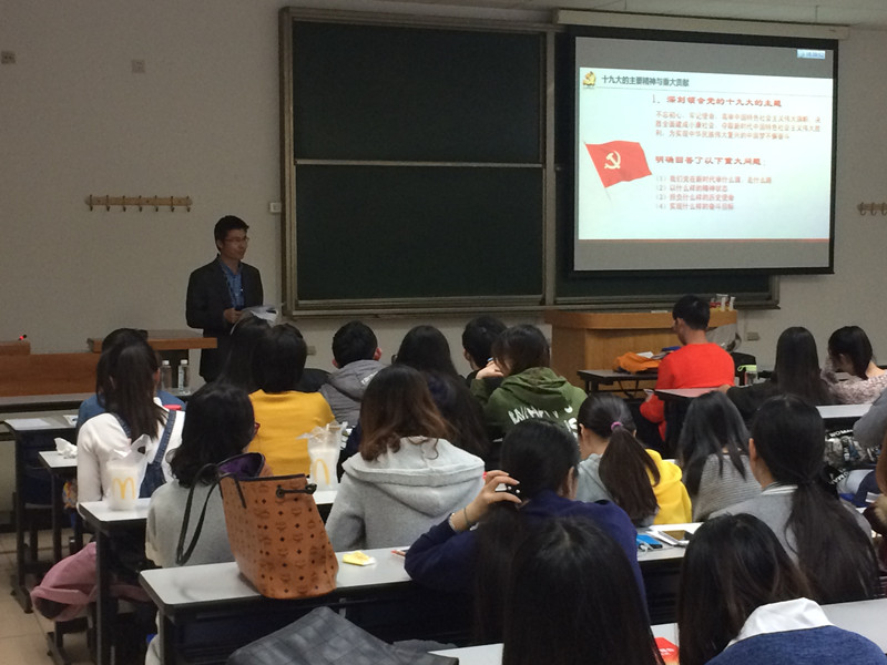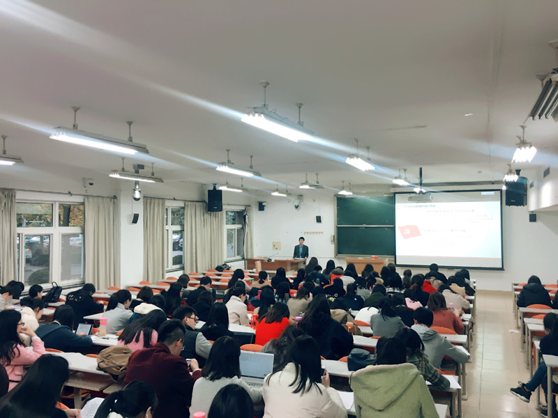11月8日,学院党委书记毛新述分别给学院全体教职工、本科生党员和研究生党员讲党课,宣讲党的十九大精神。学院全体教职工、本科生党员和研究生党员共计500余人参加学习。