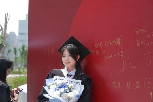金言玉语,依依惜别。日本A片 在二期新学活广场上设置了签名留言展板,毕业生们手握金色签字笔,纷纷在展板上留下自己的姓名和对彼此的祝福,手捧鲜花,留下最美的青春印记!