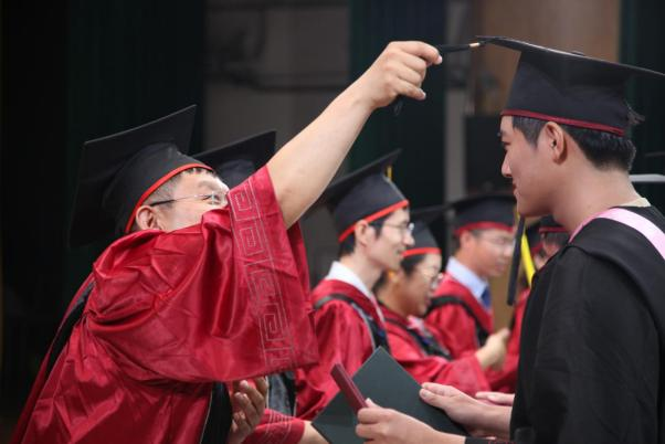 扶苏正冠师生情,商才踔厉新征程。在2023届本科毕业生学位授予仪式环节,学院学位委员会成员张春萍、毛新述、张倩、孙永波、张伟华、邓春平、彭红星、张晨宇、王勇及导师代表朱蓉共同为全体本科毕业生拨苏正冠并颁发学位证、毕业证。正冠拨穗,商舟扬帆,领航未来。