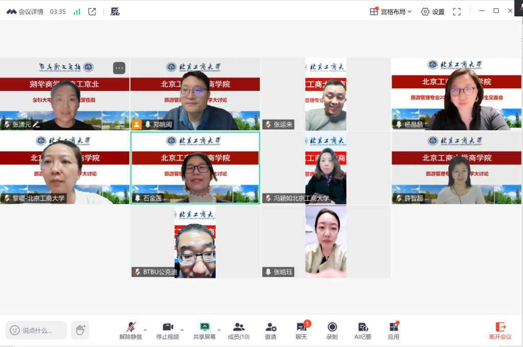 每位教师先后介绍各自所开设的全校公选课的现状、问题和建议以及微专业建设建议等方面的内容。教师们聚焦于旅游管理专业课程体系的优化、创新和数字化转型,围绕课程体系目标定位、教学内容更新、教育教学方法改革、实践教学强化等关键议题开展系统研讨。