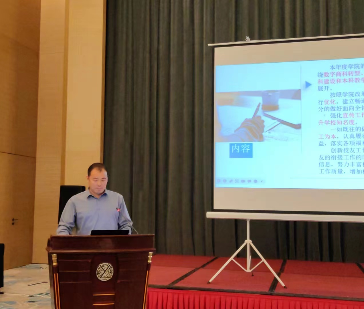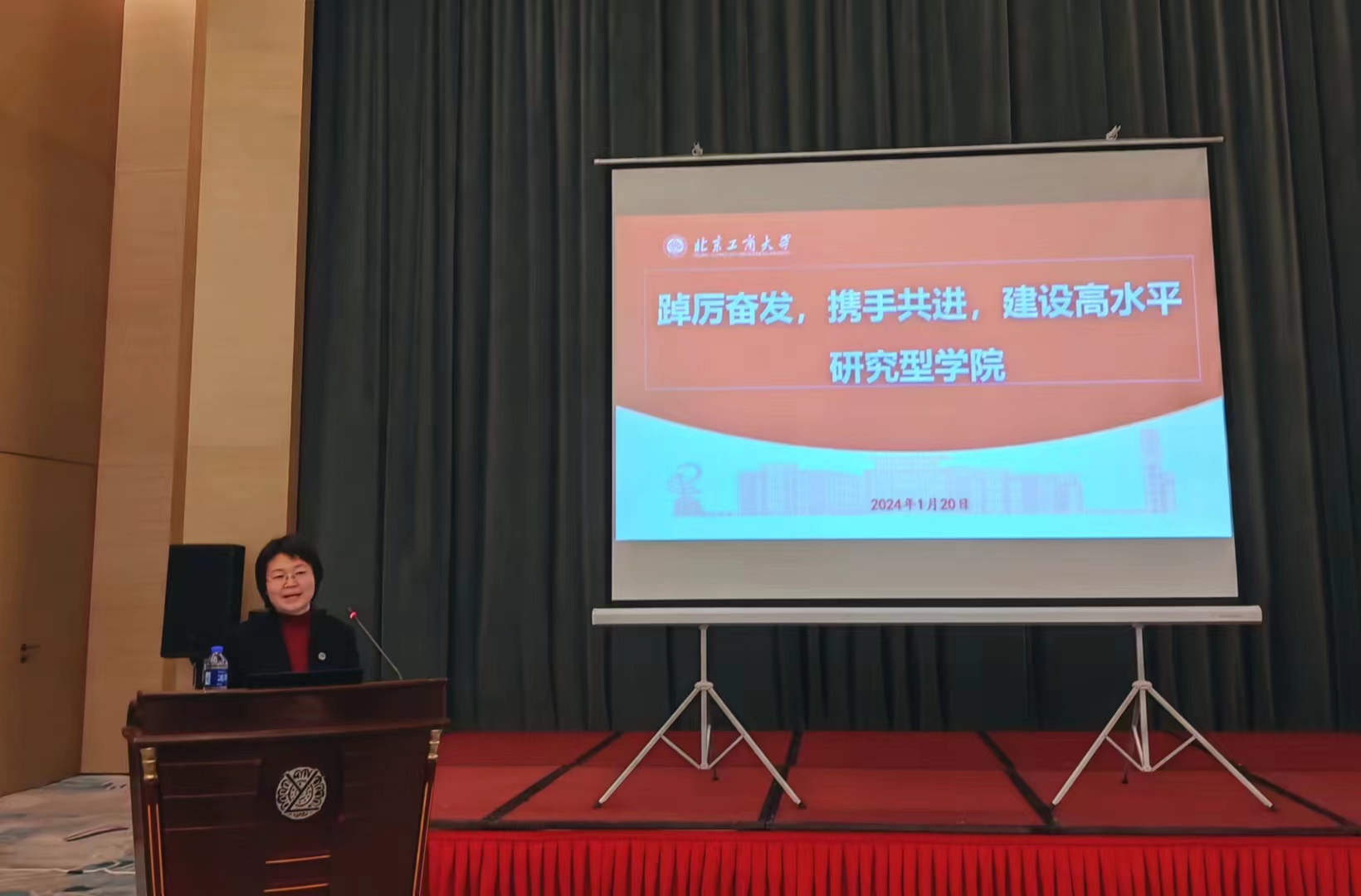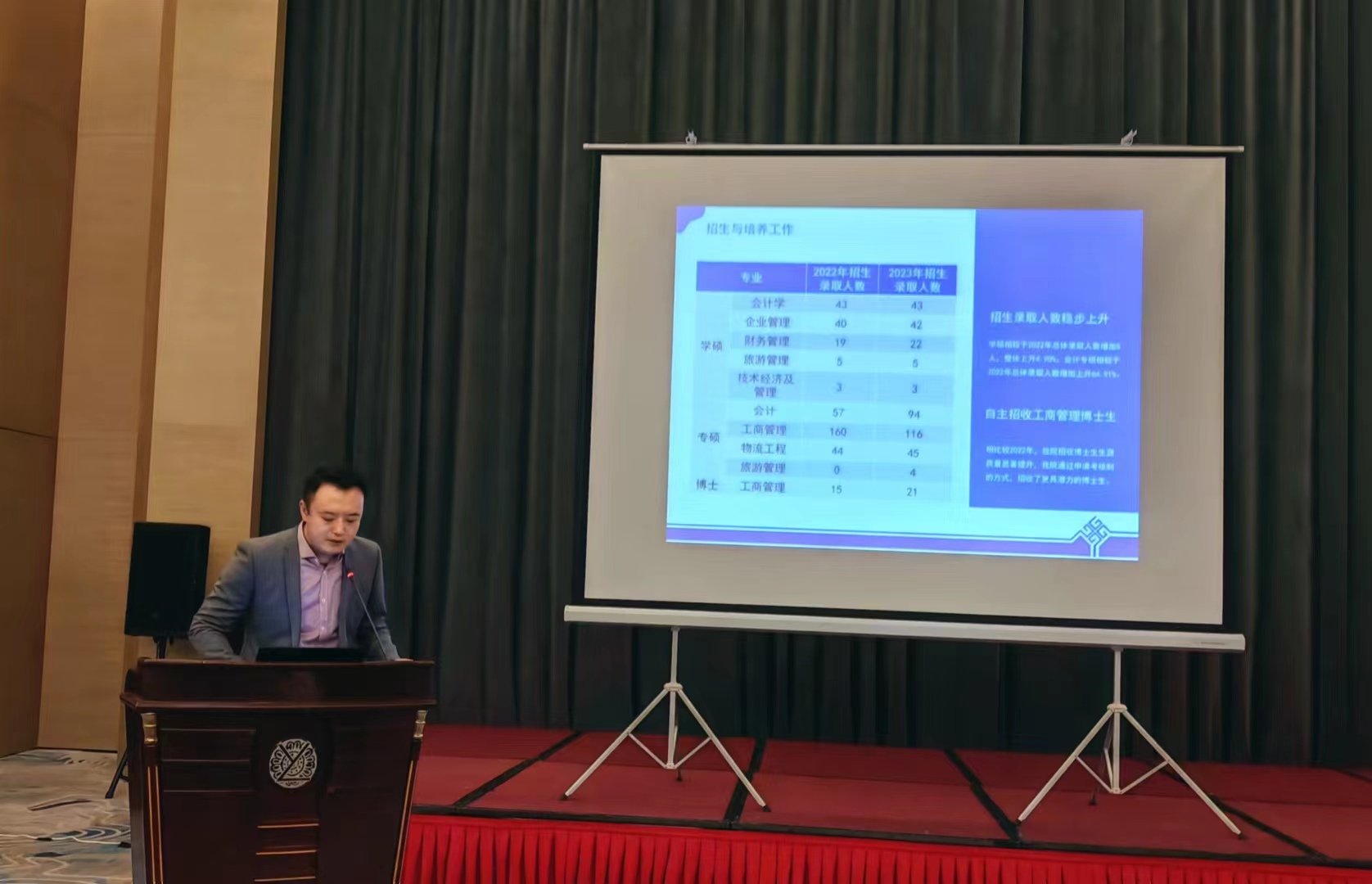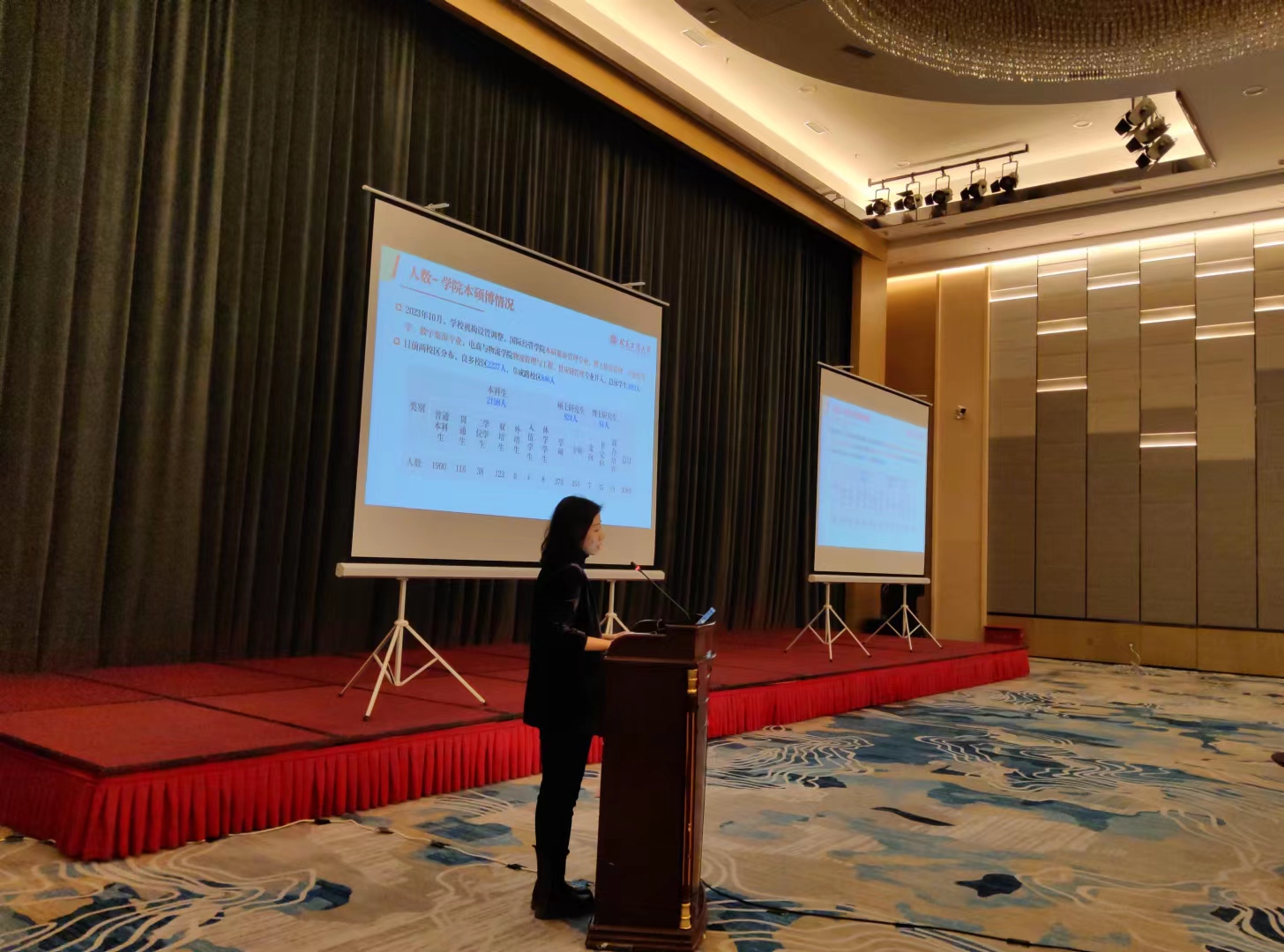 院长何玉润教授就“踔厉奋发,携手共进,建设高水平研究型学院”为主题展开了学科建设和发展规划的具体汇报,她表示人才队伍建设是第一要务,加强健全学院信息化建设是基础,招生就业两手抓是重要途径,全方位多层次的建设与发展才能共同绘就商院未来美好蓝图。