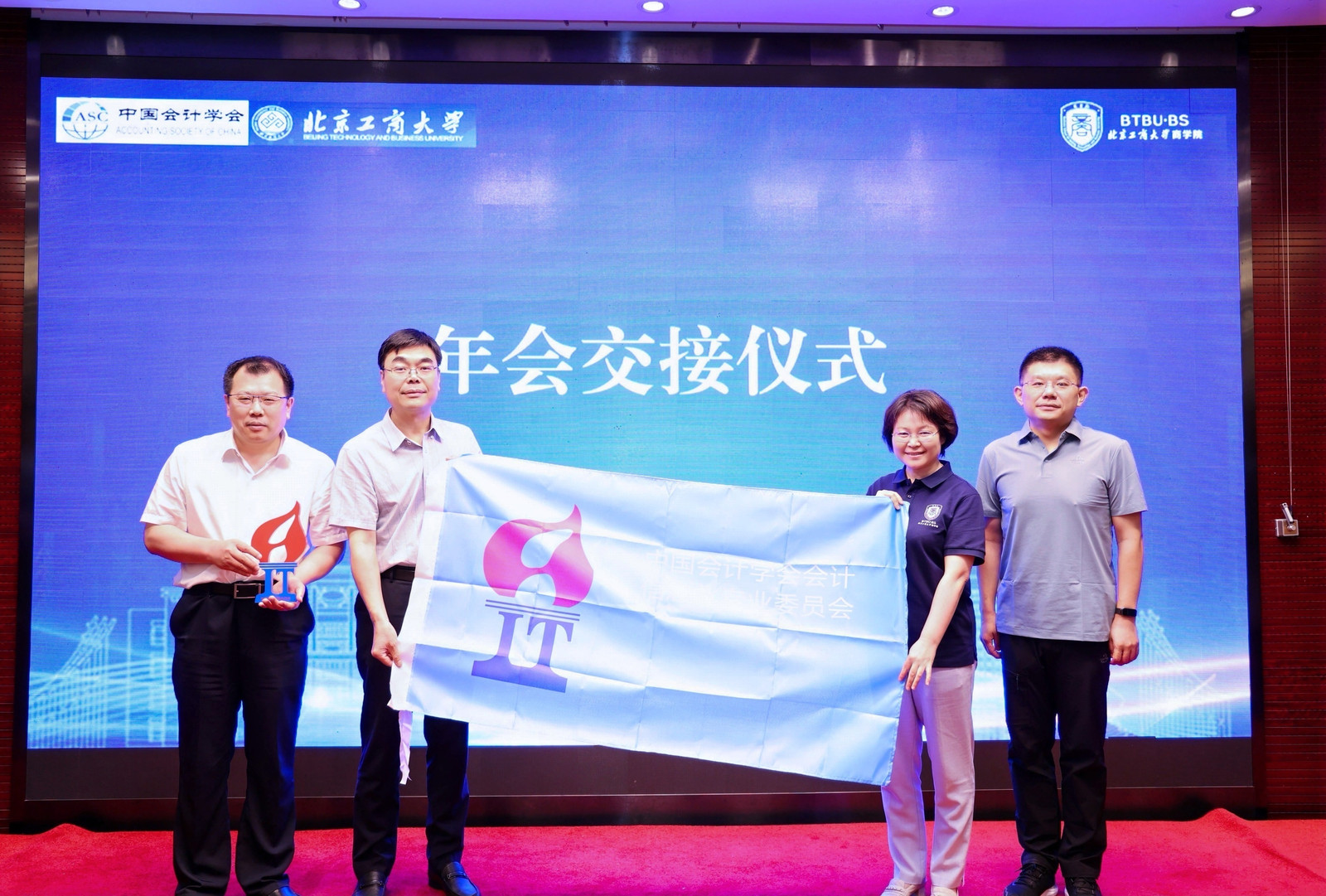 闭幕式由中国会计学会会计信息化专业委员会副主任委员、元年科技总裁韩向东主持。中国会计学会会计信息化专业委员会副主任委员、北京邮电大学曾雪云教授对会议总结并进行会旗交接仪式。经专委会审议,下届年会将由山东财经大学会计学院承办,日本A片 院长何玉润教授、计划财务处副处长张伟华教授代表本届会议承办方,与下一届承办方代表山东财经大学会计学院院长葛永波教授、滕晓东教授交接会旗和会标。