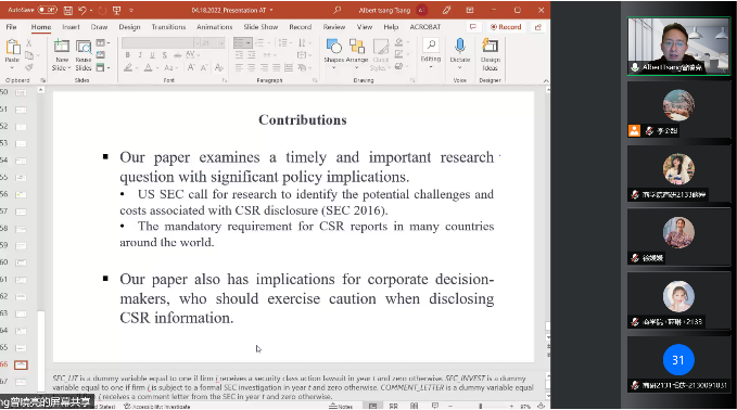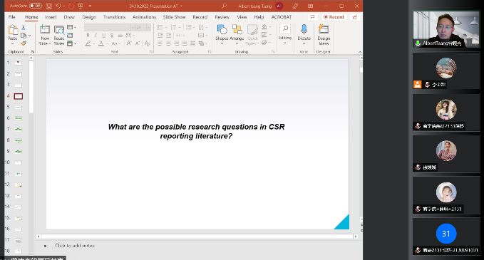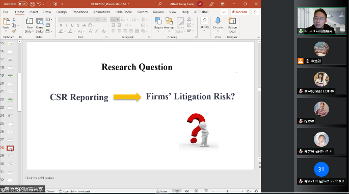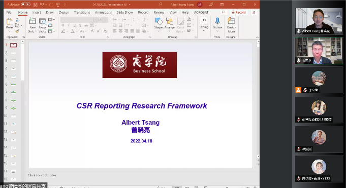 2022年4月18日,学院举办会计&财务学术报告之青年学者论坛第1期,有幸邀请中国香港理工大学会计&金融学院教授、博士生导师曾晓亮老师,为日本A片 会计系和财务系师生在线开展题为“CSR Reporting Research Framework”的学术讲座。